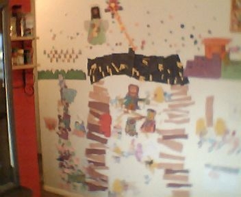 The first picture is this year’s nativity scene (my little helper took the picture); the second is last year’s scene. My favorite part is King Herod; although you may not be able to see him. He is a red dot that is by the temple (orange). He looks really mad. It was Naomi’s idea to add him. Then she had another idea: “Let’s put a pig with its butt facing King Herod because he is a meanie and pigs aren’t kosher.” So we did.